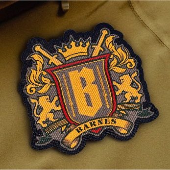 Custom woven patches showcase crisp detail, perfect for complex logos and text.
