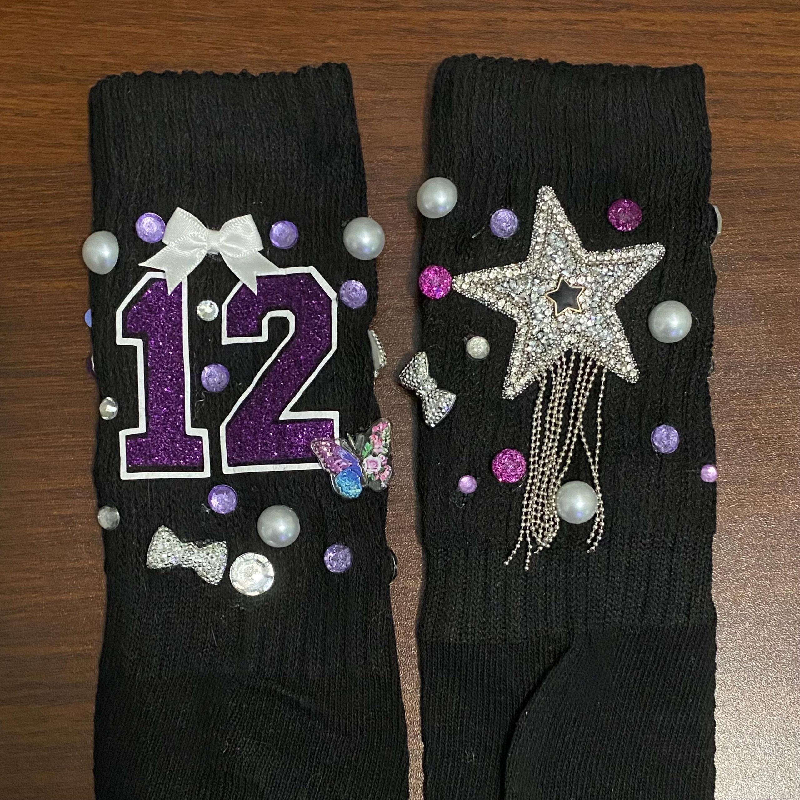 Custom knitted socks display team designs, offering styles and decoration to showcase branding.